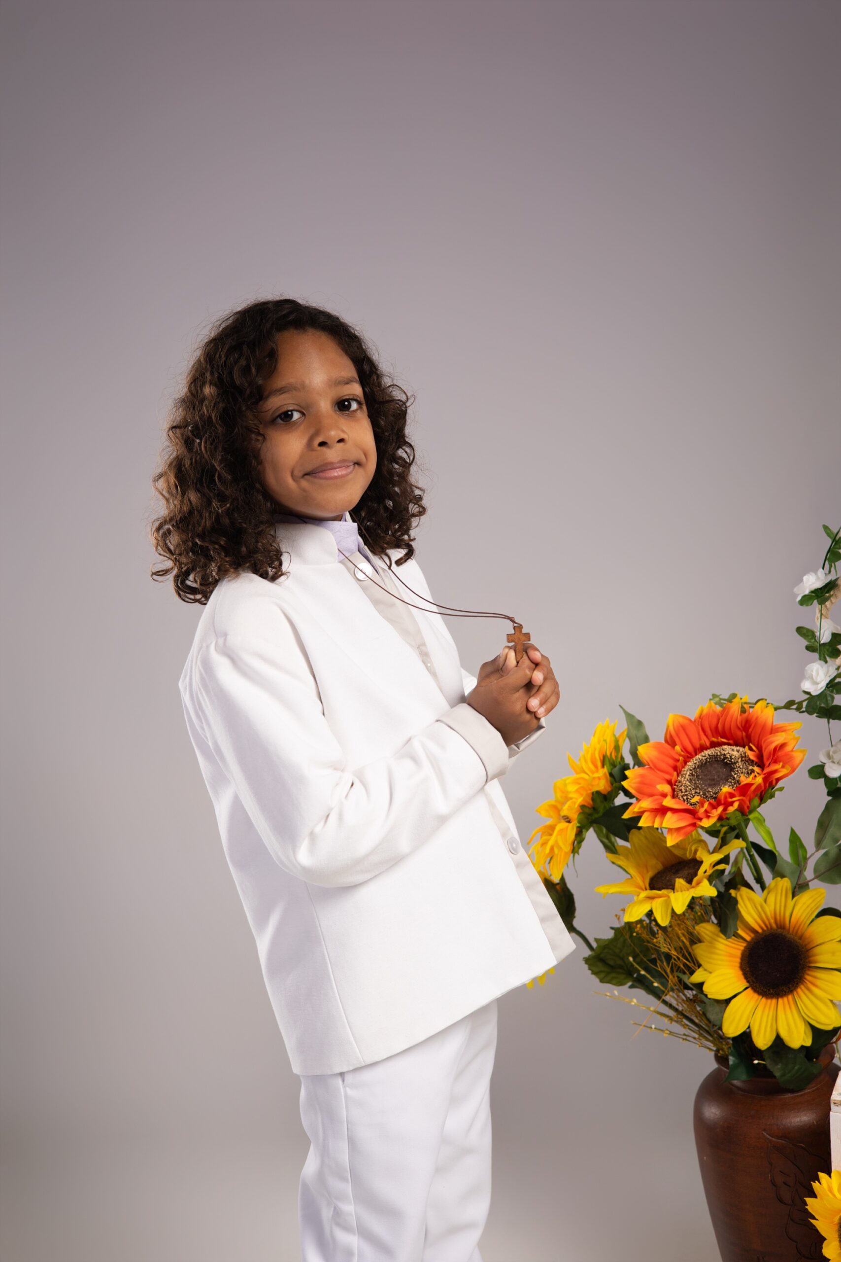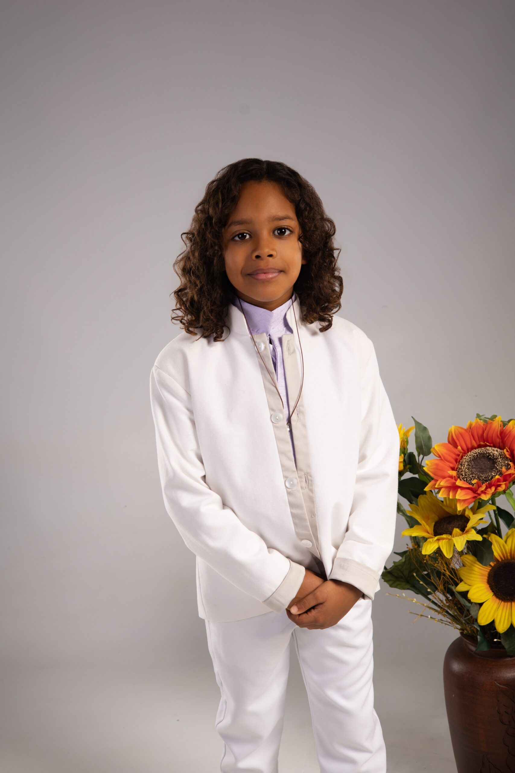 Conjunto de tres piezas, chaleco, pantalón y chaqueta con un ribete Cris