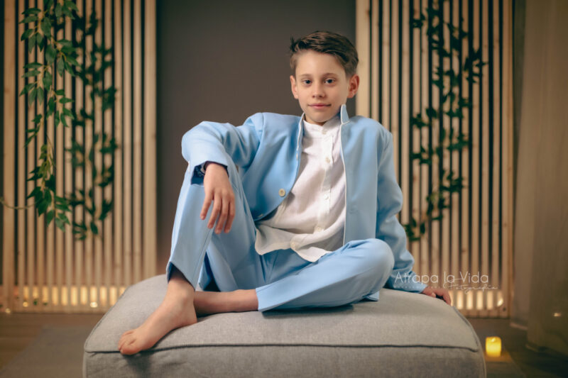 Este conjunto es ideal para una comunión, ya que tiene un balance entre formalidad y frescura, perfecto para un evento especial y a la vez cómodo para el niño.